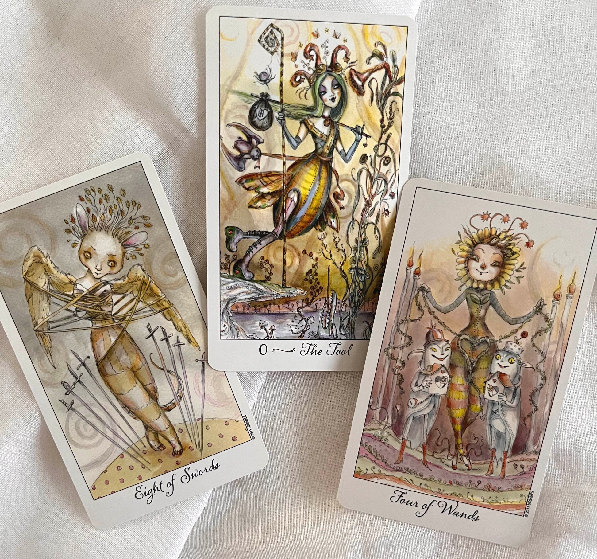 The whimsical Joie de Vivre Tarot is crafted to tap into the child-like energy within, sparking a wellspring of joy in our lives. Within this realm, sentient souls emanate pure love, enveloping those who embark on a journey through their enchanting world with a warm embrace and a desire for nothing but the very best.