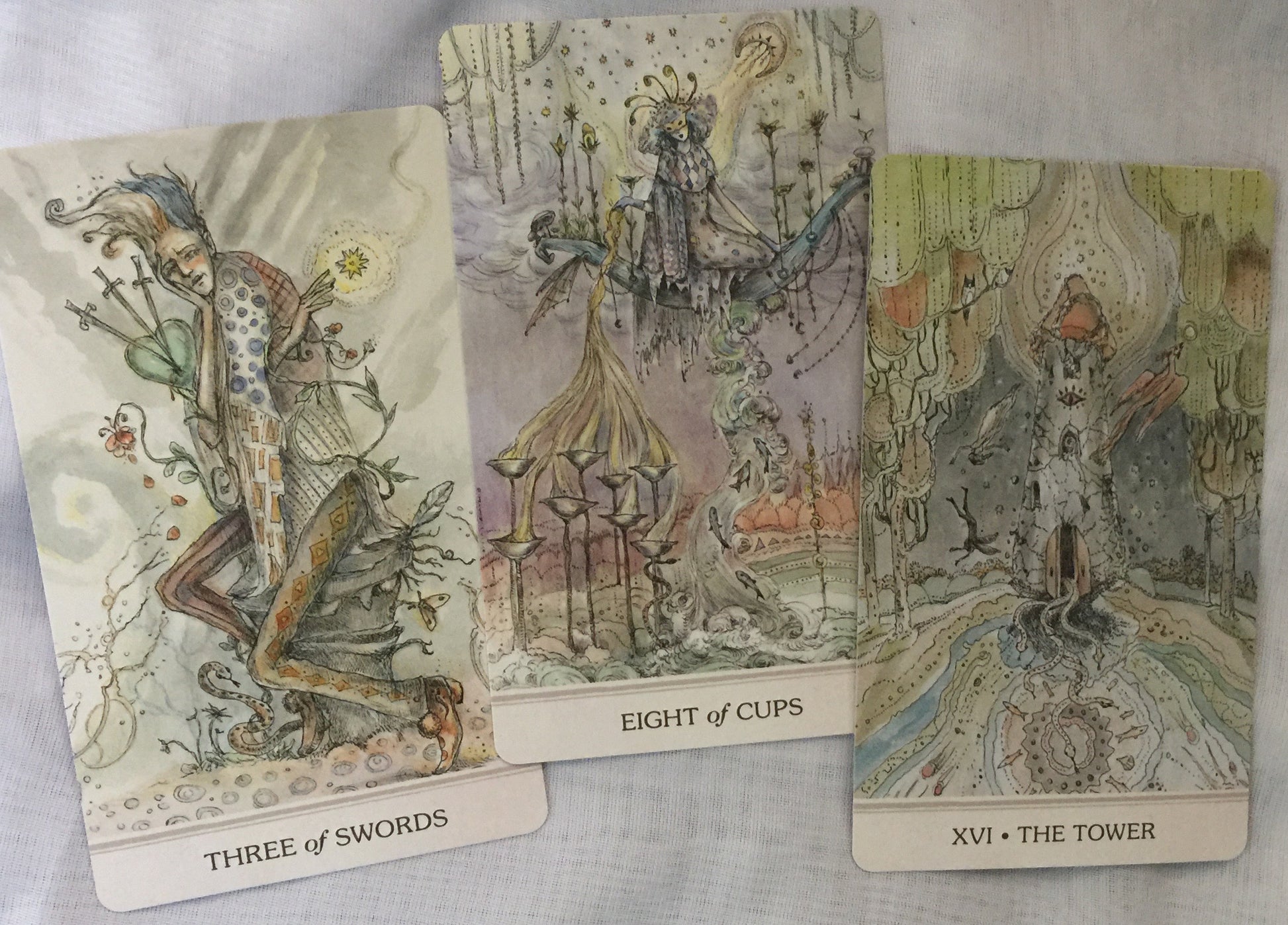 Phantasma Tarot draws you into the colorful world of daydreams and magical visions, where kindred spirits guide you on an exciting journey through the 78 cards of tarot. You will learn a great deal about yourself from these mentors and mystical creatures. The 76-page guidebook shares their messages and life lessons, as well as instructions for two Phantasma Tarot spreads.