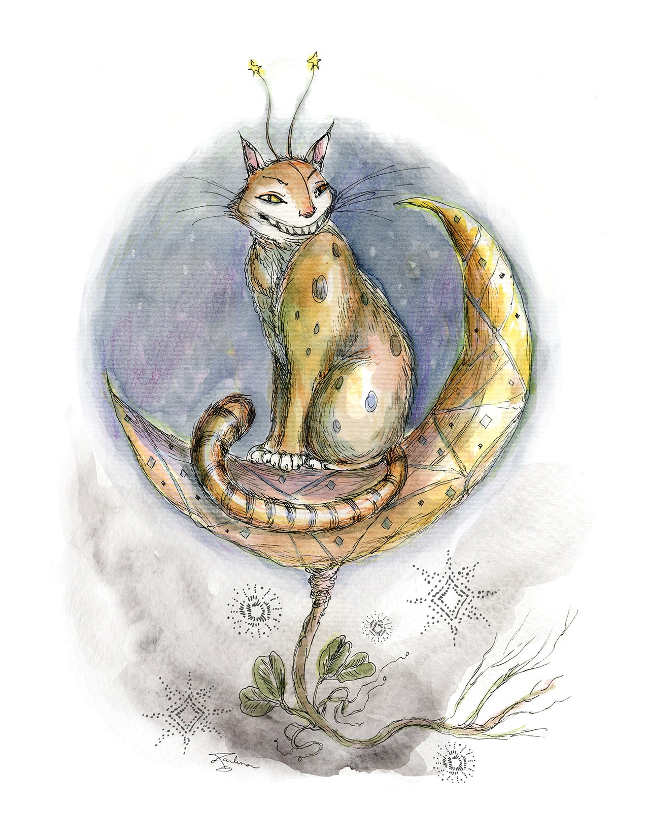 Printed on matte fine art paper and individually prepared by the artist. Available in standard sizes for framing and matting. Arrives unmatted, safely enclosed in a clear sleeve with a sturdy backing board, ready for display.