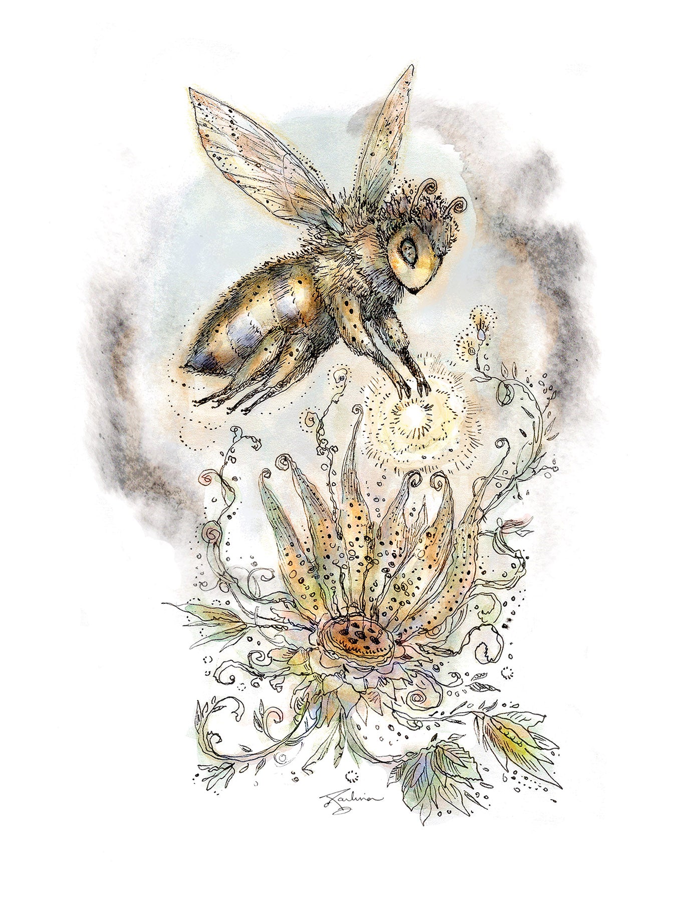 Printed on matte fine art paper and individually prepared by the artist. Available in standard sizes for framing and matting. Arrives unmatted, safely enclosed in a clear sleeve with a sturdy backing board, ready for display.